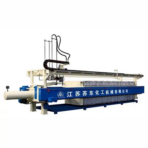 濾板一次拉開(kāi)多塊,采用圓環(huán)鏈拉開(kāi)濾板組設(shè)計(jì),濾板開(kāi)合速度快,處理量大,解決了普通廂式單塊卸餅耗時(shí)較長(zhǎng)的問(wèn)題。