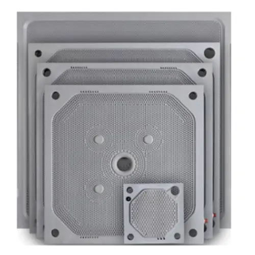 隔膜濾板由芯板和隔膜焊接而成。本著高強(qiáng)度、高回彈性、耐高壓、長壽命設(shè)計(jì)理念,隔膜材料選用國際品牌具有耐溫、耐腐蝕、高強(qiáng)度、高回彈性、抗老化性能優(yōu)異的進(jìn)口高分子彈性體TPE復(fù)合材料,設(shè)計(jì)壓榨壓力為1.0-2.0MPa或更高。濾餅含水率更低。