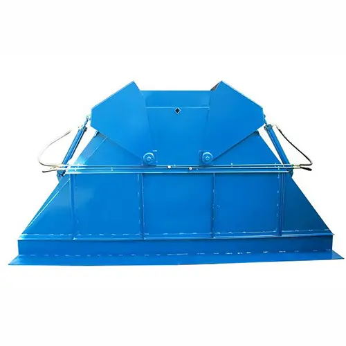 儲泥斗放置于預(yù)留孔內(nèi),由壓濾機(jī)過濾后的泥餅卸料后,儲存與其中,再由貨車運(yùn)送。儲泥斗可設(shè)置單倉門和雙倉門,由液壓系統(tǒng)和油缸控制倉門的打開和閉合,可選擇同時開啟或者獨(dú)立開啟也可以不設(shè)置倉門,做成集泥斗,過濾后的泥餅經(jīng)集泥斗直接滑落到運(yùn)輸設(shè)備。